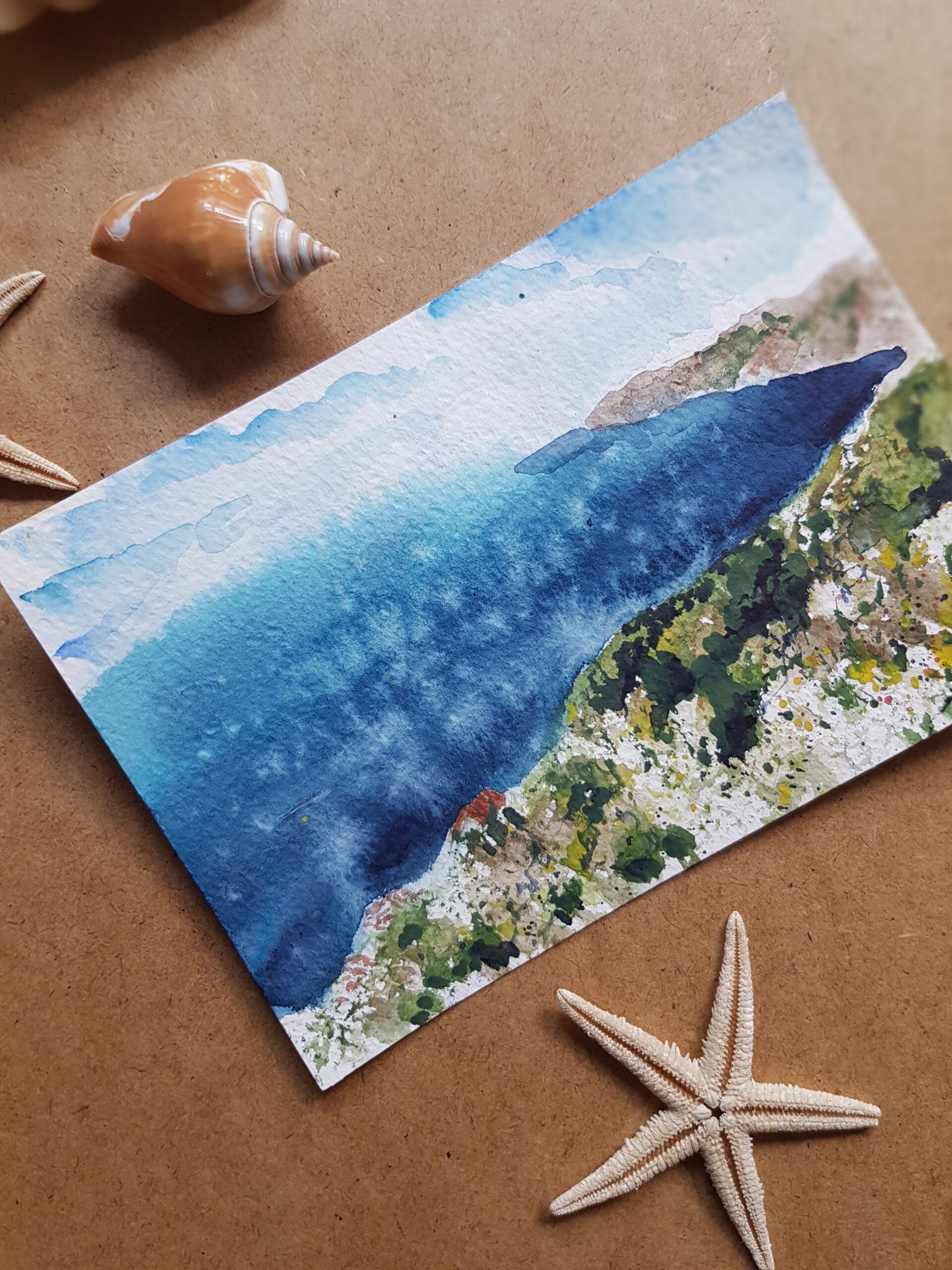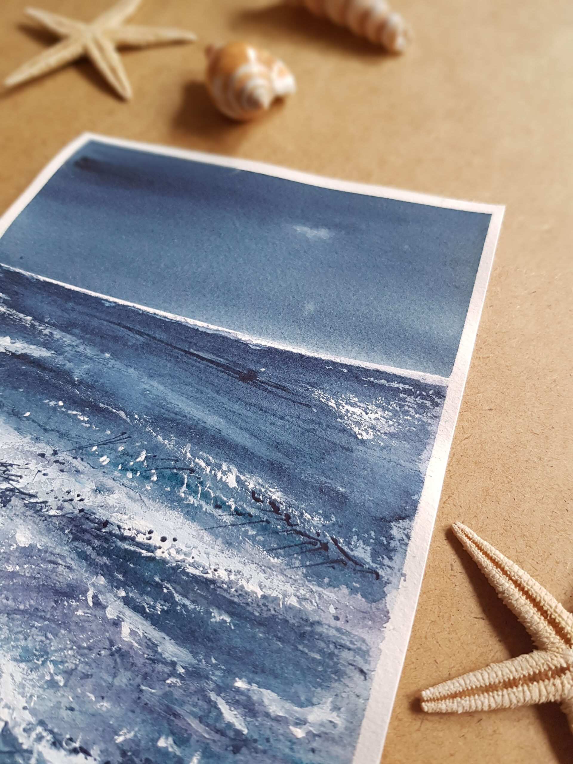 Pokażę Ci, jak malować morze w sposób swobodny i intuicyjny – bez nadmiernej kontroli, z uważnością na to, co dzieje się na papierze.