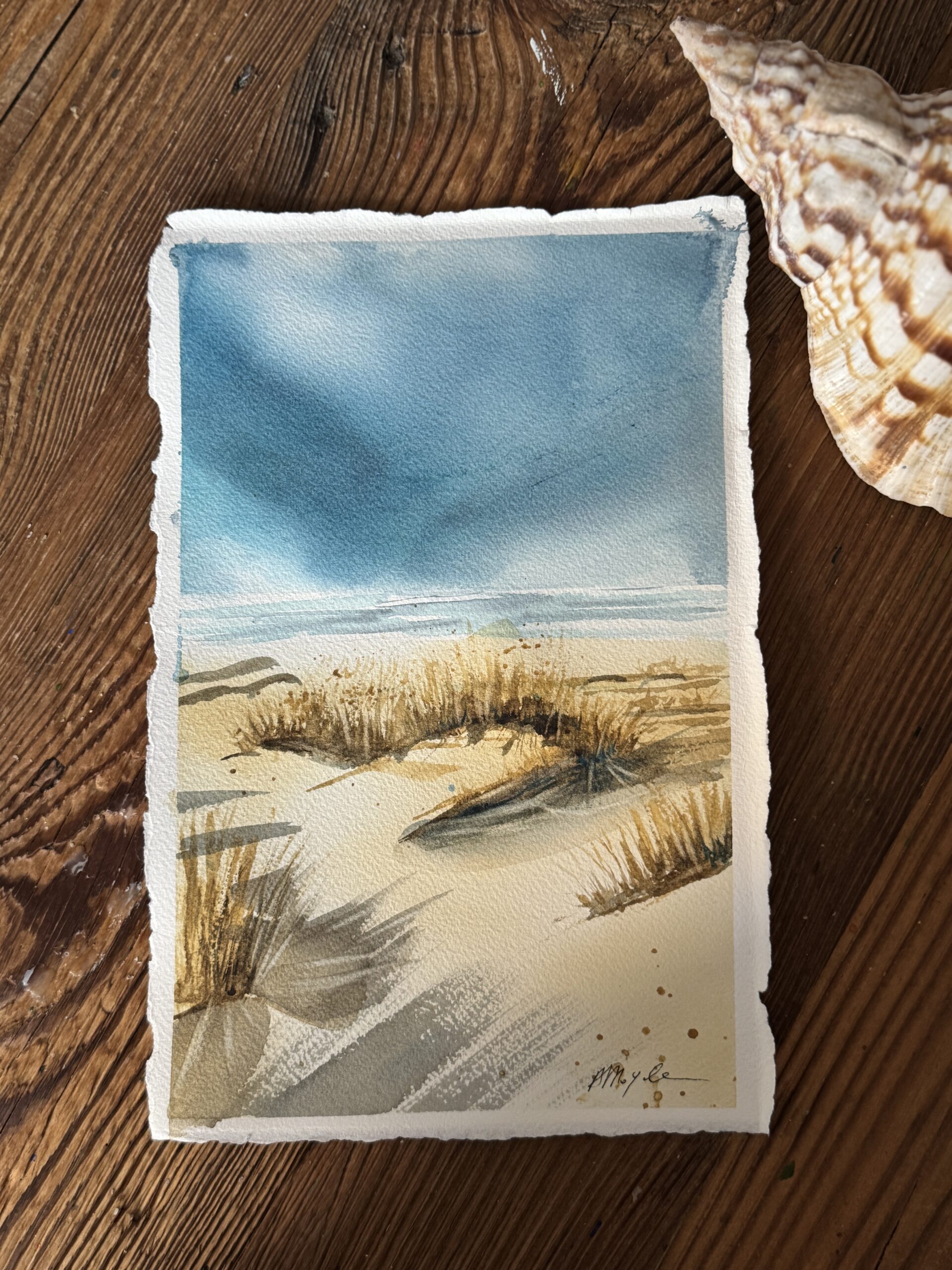 Zapraszamy na warsztat inspirowany spokojem nadmorskich krajobrazów i detalem ukrytym w naturze. To spotkanie z akwarelą, które pozwala zwolnić i zanurzyć się w rytmie morza – jego kolorach, fakturach i formach.